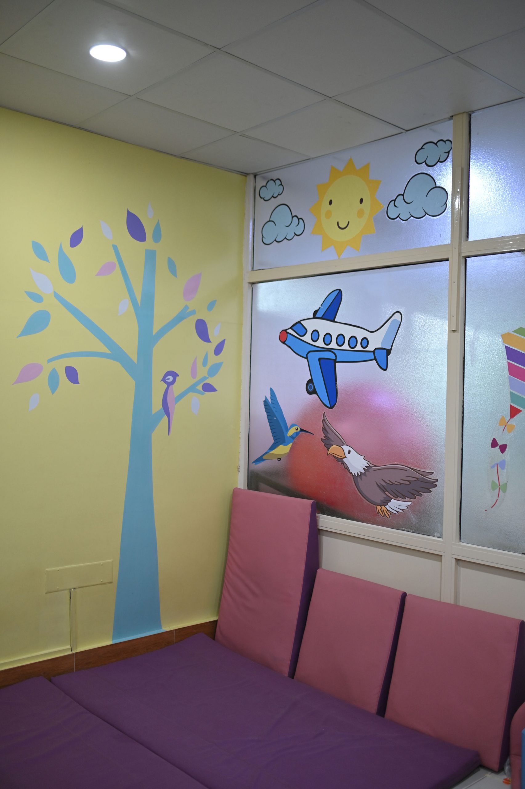 The physiotherapy ward for our young heroes aged 5 to 8 was a labor of love. We worked within budget constraints to infuse the space with touches of green and blue, colors that resonate with vitality and calmness. With creativity as our guiding star, we crafted artificial MDF trees that now stand tall in the ward. These whimsical trees serve as not just decorative elements but also as symbols of hope and growth. They remind our little patients that they too can grow strong and resilient.