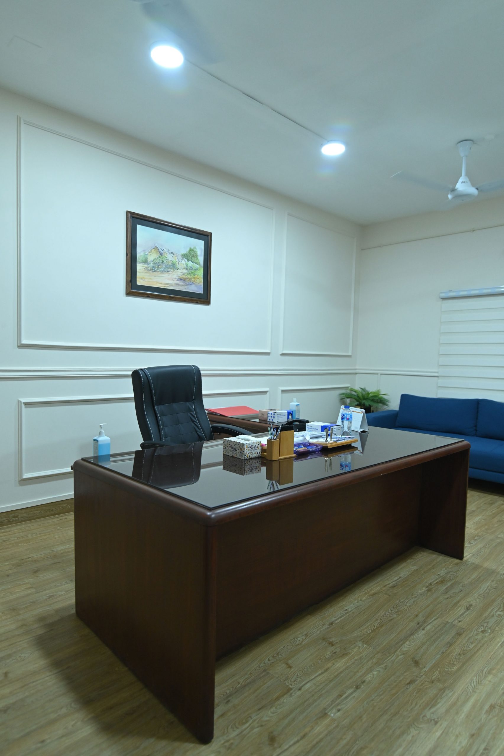 In the private office room, we adorned the walls with white-on-white paneling, creating a canvas of simplicity and tranquility. It’s a space where focus meets serenity, perfect for moments of healing and consultation.